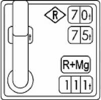 ![]() 70 t - masa hamująca bez czynnego przyspieszacza hamowania nagłego 75 t (kolor czerwony) - masa hamująca z włączonym przyspieszaczem hamowania nagłego |