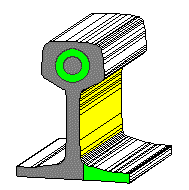 Rys.13.6 Szyny typu S42, S49 i UIC60 klasy II, kategorii N, odmiany K są znakowane podobnie jak szyny klasy I lecz kolorem zielonym.Przykład: szyna klasy II z dwustronnie nawierconymi otworami długości normalnych. |