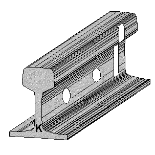 Rys.13.1 Szyny klasy I, kategorii N, odmiany K, z dwustronnie nawierconymi otworami długości normalnych dla S42 i S49 - 30 i 25m, dla UIC60 - 25, 24 i 23m. Długość [m] jest podana (wybita) na czole szyny. |