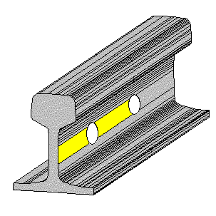 Rys.13.12 Szyny typu S49 i UIC60, klasy I, kategorii T ze stali St90PA, odmiany K, z dwustronnie nawierconymi otworami długości normalnych dla S49 - 30 i 25m, dla UIC60 - 25, 24 i 23m. Długość [m] jest podana (wybita) na czole szyny. |