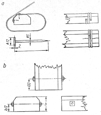zabezpieczać klamrami w postaci litery T lub S wbitymi w czoło;