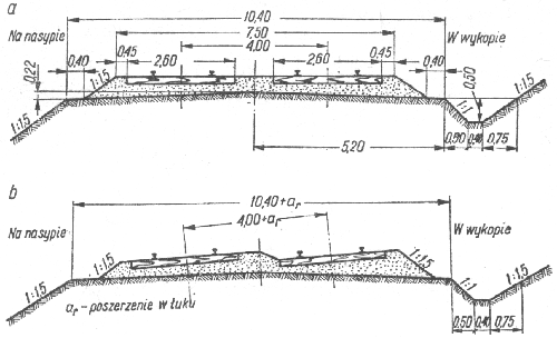 Rys.7.1. Linia magistralna dwutorowa na prostej (a) i na łuku
