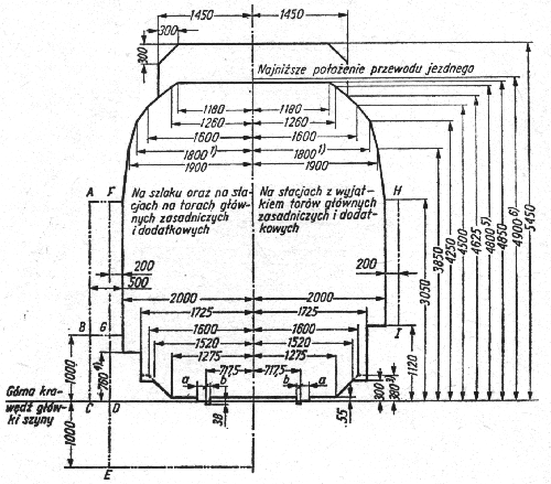 2. Wymiary skrajni w kierunku pionowym liczy się od górnej krawędzi główki szyn, a w kierunku poziomym - od osi toru.