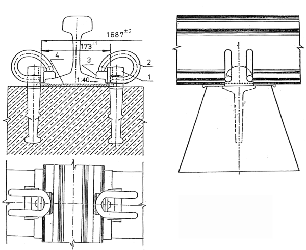 Rys.4 Przytwierdzenie typu K szyny S49 do podkładów