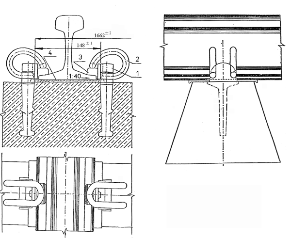 Rys.3 Przytwierdzenie typu K szyny UIC60 do podkładów