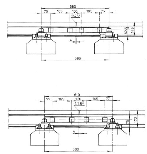 Rys. 4 Złącze szynowe izolowane klejono-sprężone z łubkami czterootworowymi z szyn S49.