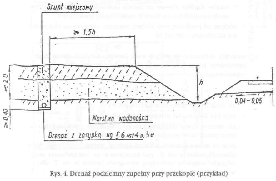 przekopu lub też rowem bocznym (wskazany jest drenaż zupełny