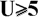 b) jeśli U<5, zawartość cząstek