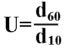 U - wskaźnik różnoziarnistosci określony wg pkt. 1