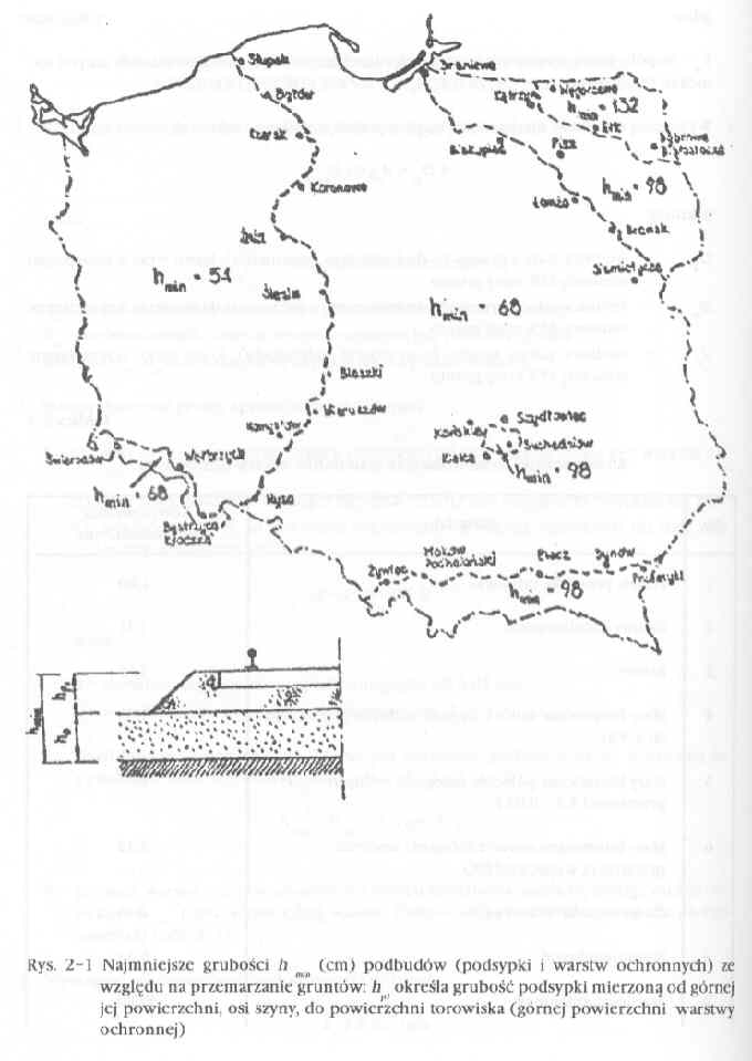 3) Grubość warstw przeciwmrozowych z innych materiałów ustala się dzieląc otrzymany wymiar h i przez odpowiednią wartość równoważnika termoizolacyjnego dla danego materiału (tabl. 2-1)