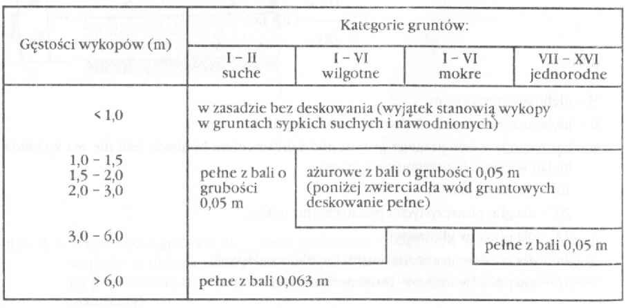 stosuje się deskowanie petne przy wszystkich głębokościach