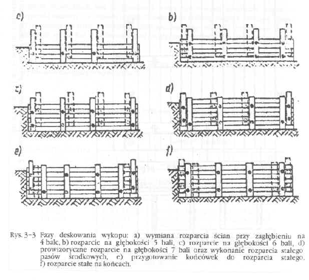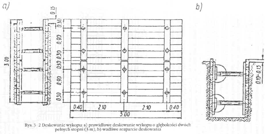 Wykop odeskowuje się w miarę postępu robót (rys. 3~3):