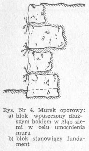 4. Do umocnienia krawędzi pobudowanych dróg i placów najlepiej nadają się krawężniki betonowe o wym. 5 cm X 30 cm x X 50 cm, wystające do 5 cm nad powierzchnię.