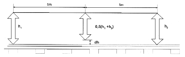 | dh - wiełkość nierówności pionowej toku szynowego mierzona na bazie 10m. |