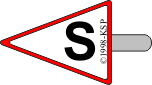 Trókątna tarczka pomalowana z obu stron na kolor biały z czerwoną obwódką i czarną literą "S", pokazywana w kierunku zbliżającego się pociągu