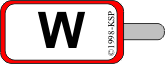 Prostokątna tarczka, pomalowana z obu stron na kolor biały z czerwoną obwódką i czarną literą "W", pokazywana w kierunku zbliżającego się pociągu