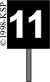 Wskaźnik W11a. Oznacza, że za wskaźnikiem znajduje się tarcza ostrzegawcza semafora wjazdowego lub odstęppowego albo semafor, którego obrazy sygnałowe mogą nie być widoczne w sposób ciągły z wymaganej odległości