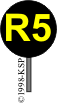 Okrągła czarna tablica, a na niej żółta litera "R" i żółta liczba wskazująca numer kanału radiołączności pociągowej. Gdy nie można ustawic tej tablicy z zachowaniem skrajni, stosuje się tablicę o zmniejszonym gabarycie i omieszcza się ją nisko