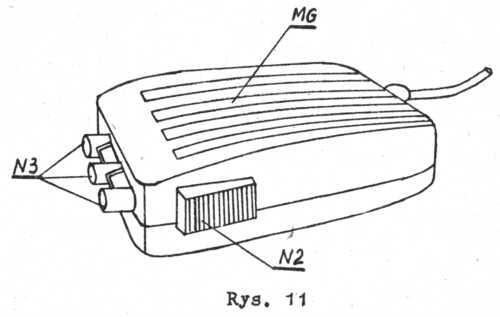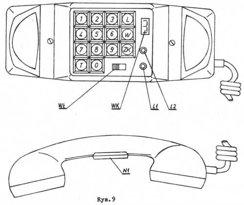 27. Odbieranie informacji przez urządzenie z jednym zespołem nadawczo-odbiorczym przez czas dłuższy niż 20 sek. powoduje pulsowanie lampki L 1 wskazującej wybrany kanał, jest to sygnał, że po upływie dalszych 10 sek. kanał zostanie samoczynnie wyłączony (rozmowa zostanie przerwana). W celu przedłużenia czasu odbioru należy ponownie przycisnąć właściwy przycisk wybierania kanału N 1.