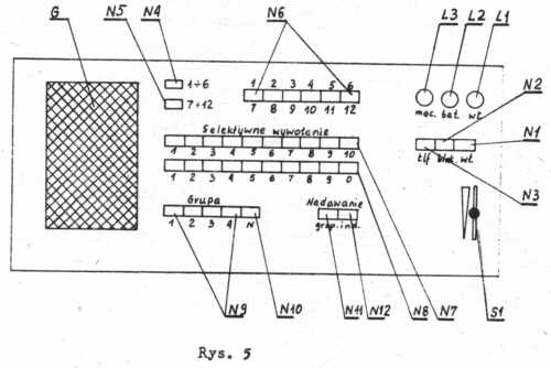 14. Wzięcie do pracy kanału (zgłoszenie) sygnalizowane jest świeceniem światłem ciągłym lampki zielonej L 1 umieszczonej nad wciśniętym przyciskiem.