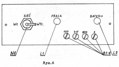 6. Zasilacz bateryjny zasila zestaw przewoźny prądem stałym o napięciu 12 V lub 24 V (z baterii akumulatorów) i nie wymaga obsługi związanej z włączeniem oraz wyłączeniem radiotelefonu.