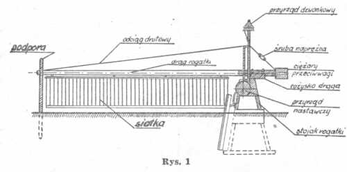 rogatkowy z odciągiem drutowym, siatką oraz przyrząd dzwonkowy
