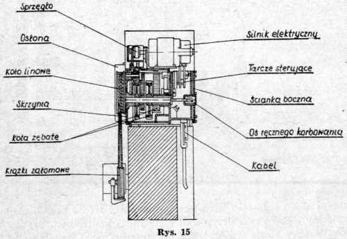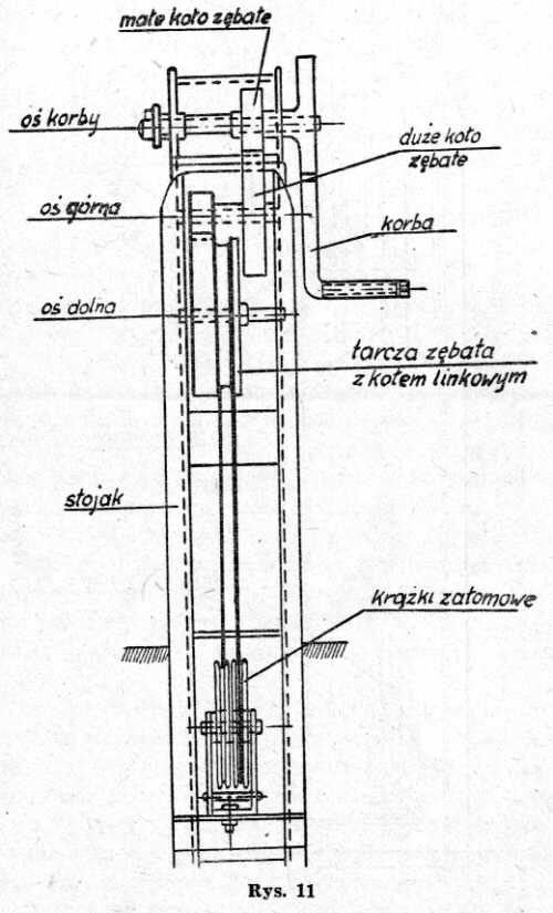 obrotu osi krążka linkowego przyrządu nastawczego rogatki.