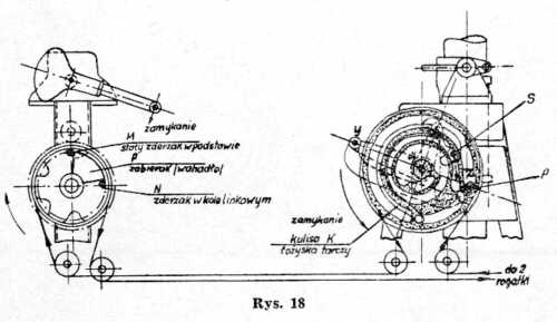 kulisie K (łożyska tarczy nastawczej) porusza - przez swoją