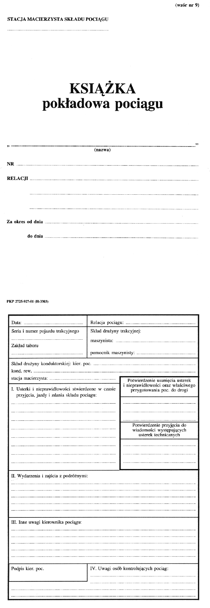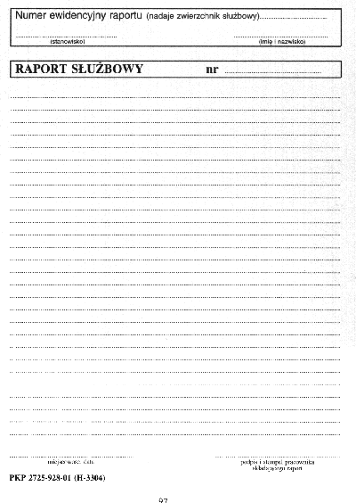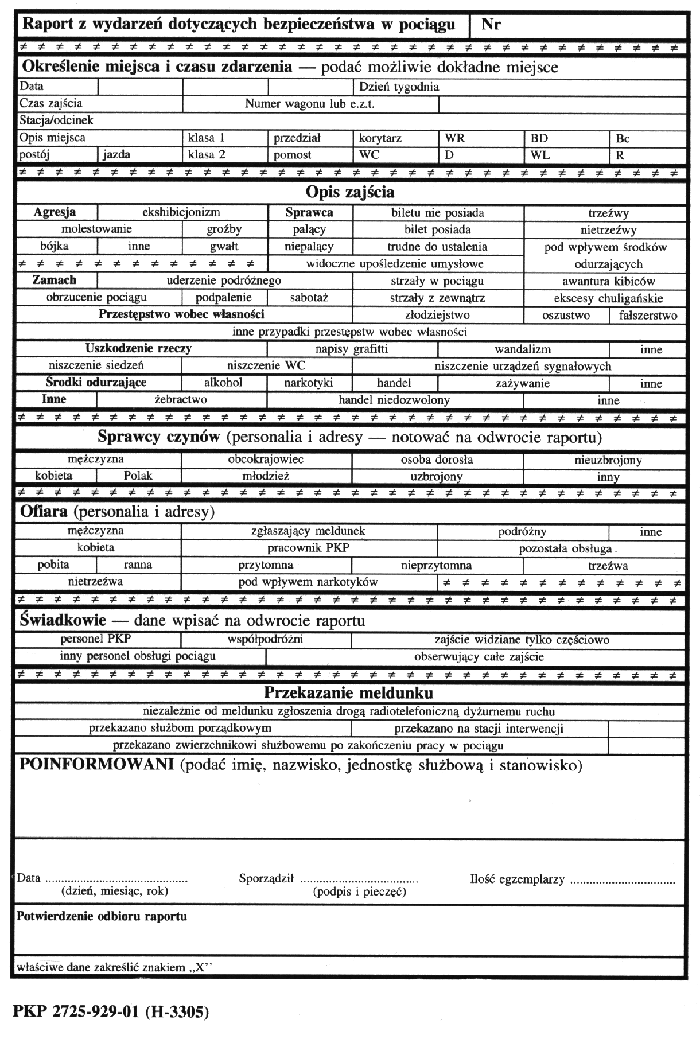Raport z wydarzeń dotyczących bezpieczeństwa pociągu