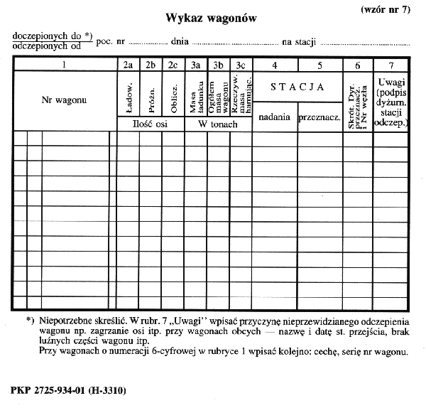 Międzynarodowy wykaz wagonów w składzie pociągu