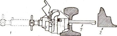Miejsce na opornicy, w którym należy założyć zwrotnicowy zamek kluczowy, oznaczone jest przez pomalowanie szyjki szyny na biało (rys. 2). Przytrzymywanie iglicy w położeniu odsuniętym za pomocą trzpienia uwidocznione jest na rys. 1.