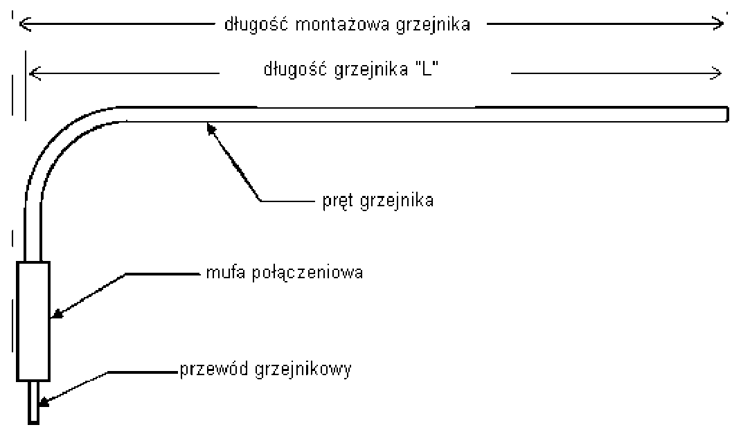 2.2.3.3.1. pręt grzejnika - składający się z metalowego płaszcza grzejnika o przekroju płasko-owalnym, wewnątrz którego jest umieszczony element grzewczy (drut grzewczy lub spirala grzewcza) oraz materiał izolujący elektrycznie element grzewczy od płaszcza. 2.2.3.3.2. mufa połączeniowa - nierozbieralna, hermetyczna o stopniu ochrony IP-X8, łącząca przewód grzejnikowy z prętem grzejnika. W zależności od producenta grzejników, może być zastosowana: