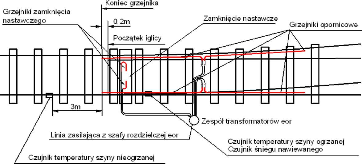 Rys. 2. Instalacja urządzeń eor w rozjeździe (rysunek poglądowy).