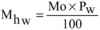 9. Jeżeli rzeczywista masa hamująca pociąg jest mniejsza od wymaganej masy hamującej i nie można włączyć odpowiedniej liczby czynnych hamulców, należy zmniejszyć ogólną masę pociągu odpowiednio do posiadanej rzeczywistej masy hamującej. Masę ogólną (Mo), jaką może zabrać pociąg przy posiadanej rzeczywistej masie hamującej (M^) i wymaganym procencie masy hamującej (Pw), oblicza się według wzoru: