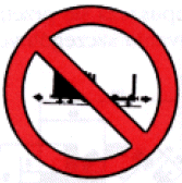 Zakaz najeżdżania. Znaczenie znaku: - podjąć specjalne środki ostrożności przy rozłączaniu i rozrządzaniu pociągu oraz w celu ochrony wagonu, - wagon nie może najeżdżać na inne wagony i musi być chroniony przed najeżdżaniem przez inne pojazdy. |