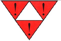 Zakaz staczania i odrzucania Trzy czerwone trójkąty z czarnymi wykrzyknikami Rozrządzanie tylko przez przetaczanie, nie pozwalać najeżdżać, chronić przed najeżdżaniem innych pojazdów. |