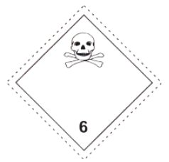Materiały trujące Symbol (trupia czaszka ze skrzyżowanymi piszczelami): czarna na białym tle; cyfra "6" w dolnym rogu |