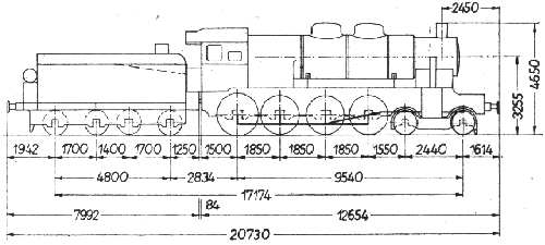 | 34 | Ciężar parowozu z tendrem w stanie: - próżnym [kG] - służbowym [kG] |