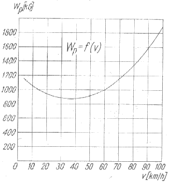 Wykres wartości oporów jazdy w zależności od szybkości jazdy