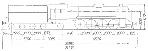 | 34 | Ciężar parowozu z tendrem w stanie: - próżnym [kG] - służbowym [kG] |