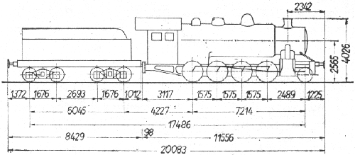 | 34 | Ciężar parowozu z tendrem w stanie: - próżnym [kG] - służbowym [kG] |