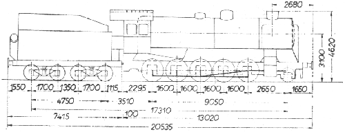 | 34 | Ciężar parowozu z tendrem w stanie: - próżnym [kG] - służbowym [kG] |