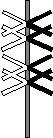 | wskaźnik Wz 6 "Zwrotnice rozjazdu krzyżowego nastawione dla jazdy w kierunku prostym z prawego toru przed rozjazdem na lewy tor za rozjazdem" |