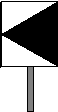 | kwadratowa tablica, biała z czarnym trójkątem o wierzchołku zwróconym w lewo, w kierunku semafora |