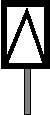 tablica z czarnym obramowaniem, na jednej stronie tablicy trójkąt skierowany wierzchołkiem w dół, na drugiej stronie tablicy zaś trójkąt skierowany wierzchołkiem w górę |
