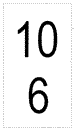 | biały prostokąt, a na nim czarny napis, składający się z liczby umieszczonej nad pojedynczą cyfrą |