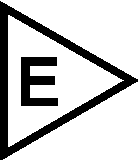 | trójkątna biała tablica z czarną obwódką i czarną literą "E": |