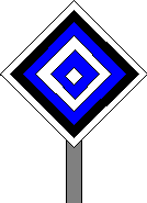 obwódkami białą i czarną, ustawiona pionowo po przekątnej, a na niej dwa białe paski pionowe i jeden poziomy połączone w kształt litery "U" |