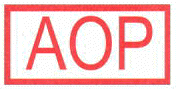 | biała prostokątna tablica z czerwonym obramowaniem i czerwonym napisem "AOP" |