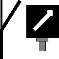 | biała, ukośna linia wyświetlona na czarnym tle prostokątnej latarni: |